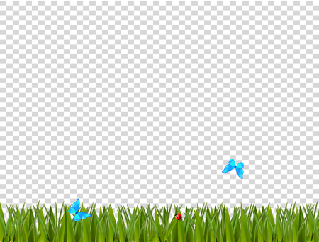 透明な背景に隔離された緑のリアルな草の水平境界線 春または夏のベクトルイラスト テンプレート クリップアート グリーティングカード フレームやイラスト のためのデザイン要素 のイラスト素材 ベクタ Image